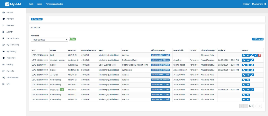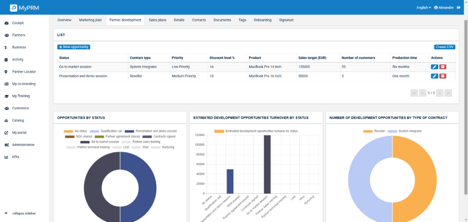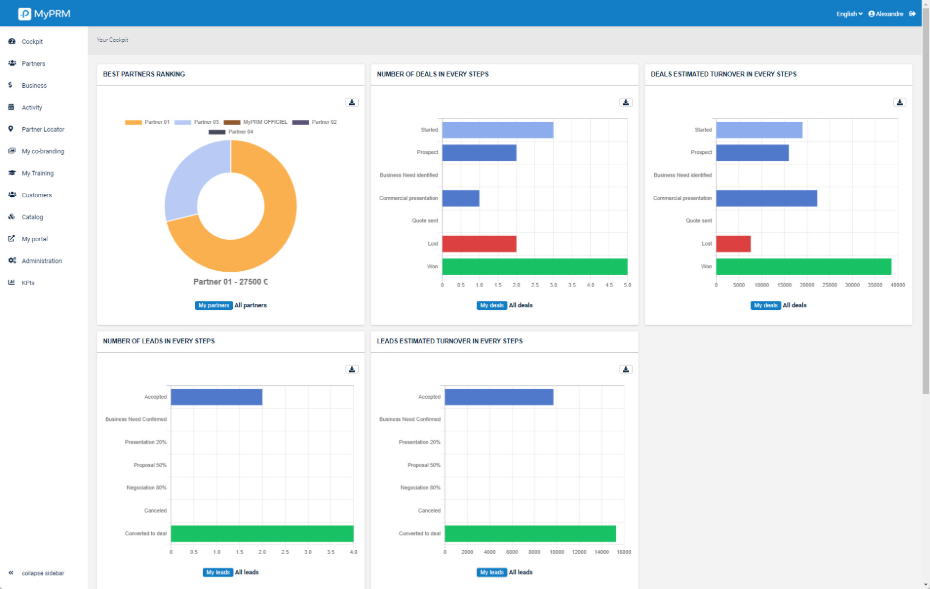 - Partner dashboard To Visualize your partners’ activities in the blink of an eye!