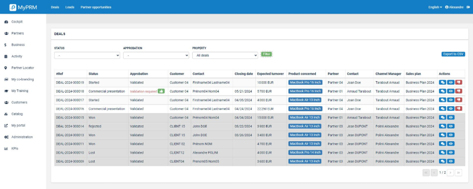 - Deal Management Track and manage the pipeline of opportunities declared by your partners as closely as possible: they develop these opportunities according to the stages you have defined, you are notified and you can set the approval rules for each stage. You can also create a discussion thread specific to each deal.